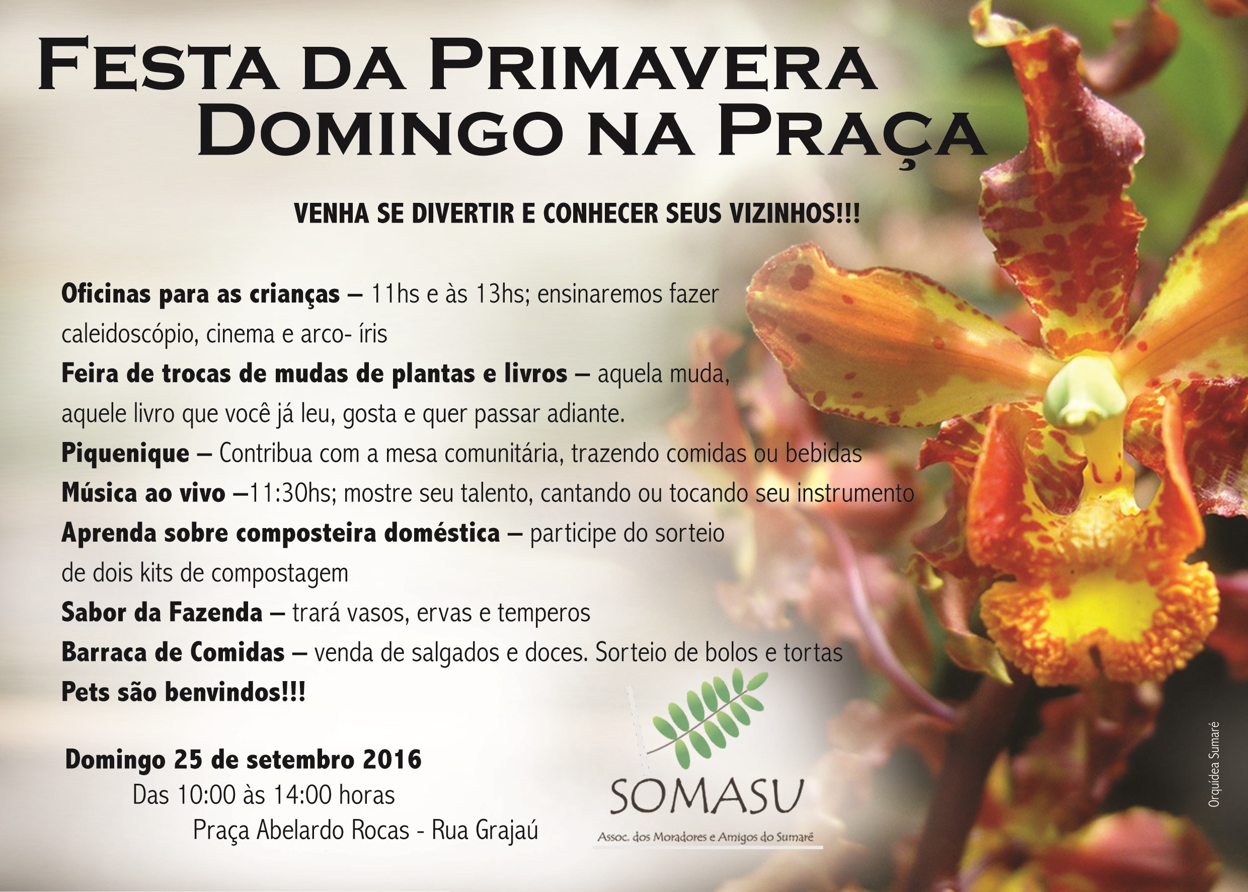 Enfim, foi tudo maravilhoso, pois além de estarmos comemorando a chegada da primavera, tivemos a oportunidade de utilizar nosso espaço público para o lazer e troca de conhecimentos que contribuíram muito para valorizar nosso meio ambiente e cidadania.